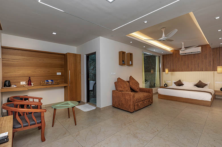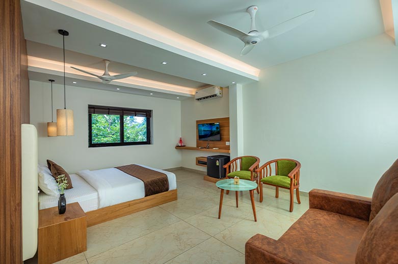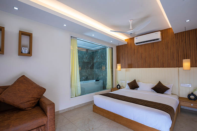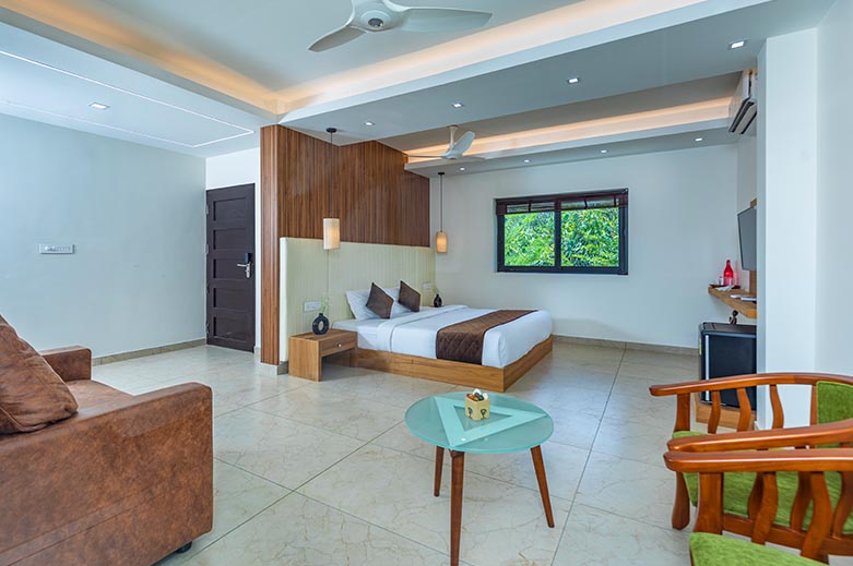350 Squerefeet, Large King size bed, Jacuzzi Bathtub, Minibar, 40 inch TV, Balcony, Garden View